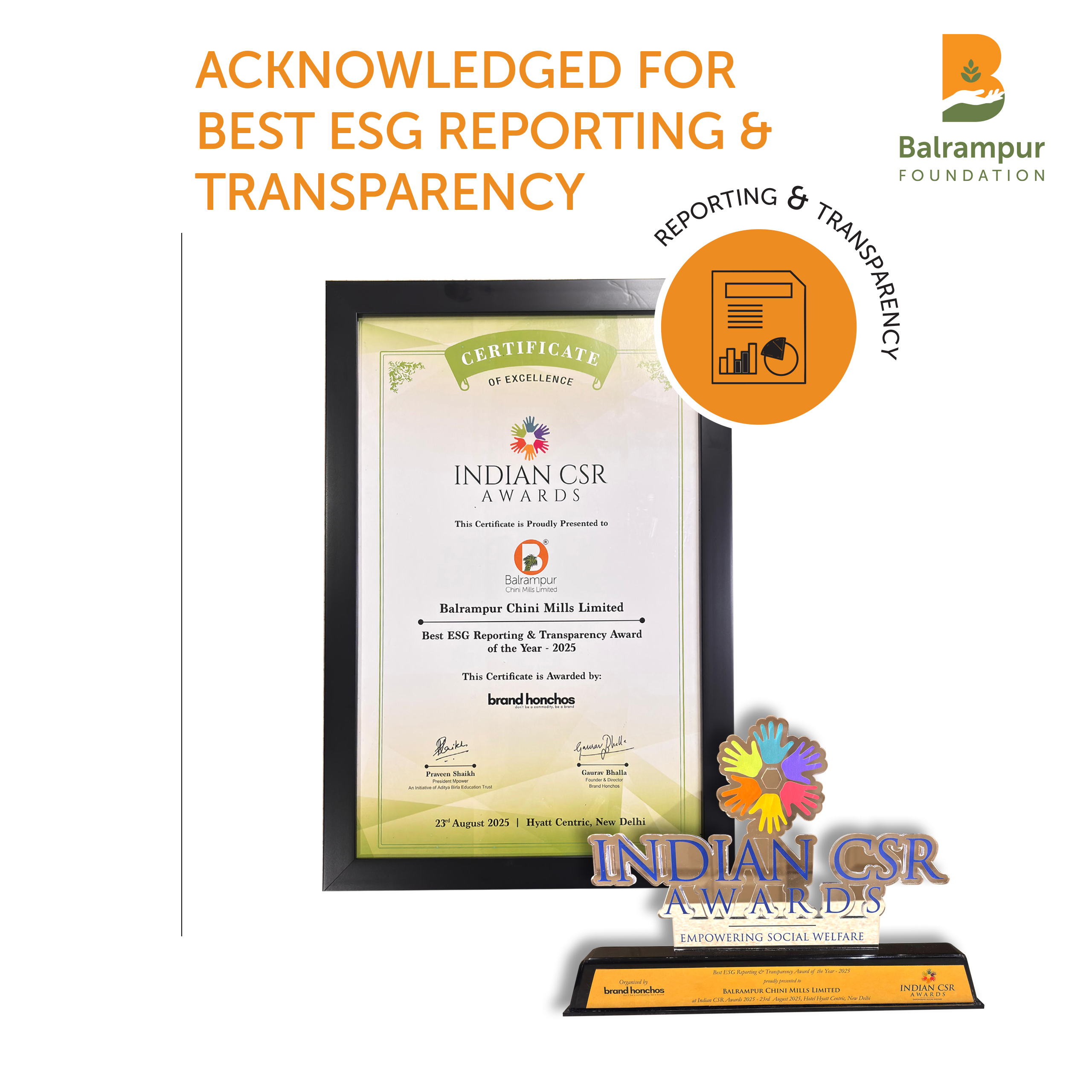 Balrampur Foundation has been recognized as 'NGO of the Year - 2024' for CSR implementation at the Indian CSR Awards.